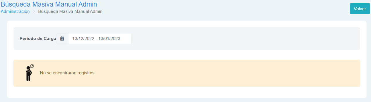 5-10.3.2. Carga masiva manual En esta opción se establece se consulta el histórico de las consultas realizadas como carga masiva.