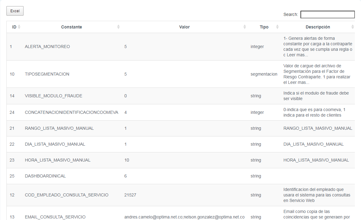 5-10.1.9. Constantes Permite definir parámetros constantes a través de los cuales va a operar la solución. Ejemplo: Días de Expiración de Contraseña. Esta funcionalidad será habilitada exclusivamente al administrador técnico de la plataforma.