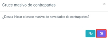 Al oprimir el botón SI inicia el proceso de cruce entre las novedades de Contrapartes y las listas de riesgo configuradas.