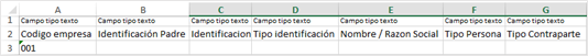 5-5.1. Descargar archivo Al seleccionar el botón Descargar Estructura Excel, se realiza la descarga del archivo con la estructura configurada para realizar el cargue de contrapartes como se observa a continuación: