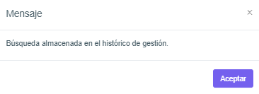 Almacena la búsqueda en el histórico de gestión de la plataforma.
