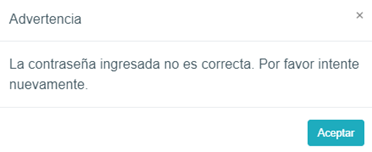 Si el código ingresado es incorrecto se genera el siguiente mensaje de error: