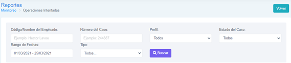 Agrupa los casos que son gestionados o fueron cerrados a través de la opción especial Reporte de Operación Intentada, como se observa a continuación: