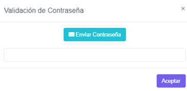 Al oprimir el botón Enviar Contraseña se remite el código de acceso al correo electrónico del usuario que cuenta con los permisos para ingresar, bajo el siguiente formato: